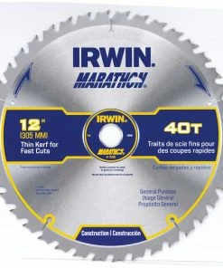 The IRWIN Marathon 12-inch 40-tooth carbide miter/table saw blade cuts through various types of material with ease. The construction-grade carbide slices through composite decking, plywood, hardwood, and softwood cleanly, leaving behind a smooth finish that only needs light sanding. It’s a great blade for woodworking projects, especially in construction and home improvement. The blade features a 400 Grit diamond ground teeth that creates a smoother finish compared to conventional blades. The thin kerf lets you cut through the material without splintering, while the precision-tensioned bladed keeps you steady on the cut line. The carbide teeth extend the blade’s life, making sure you have a razor-sharp blade for many projects. Shop the Marathon 12-inch 40-tooth saw blade at Lowes.com today.
